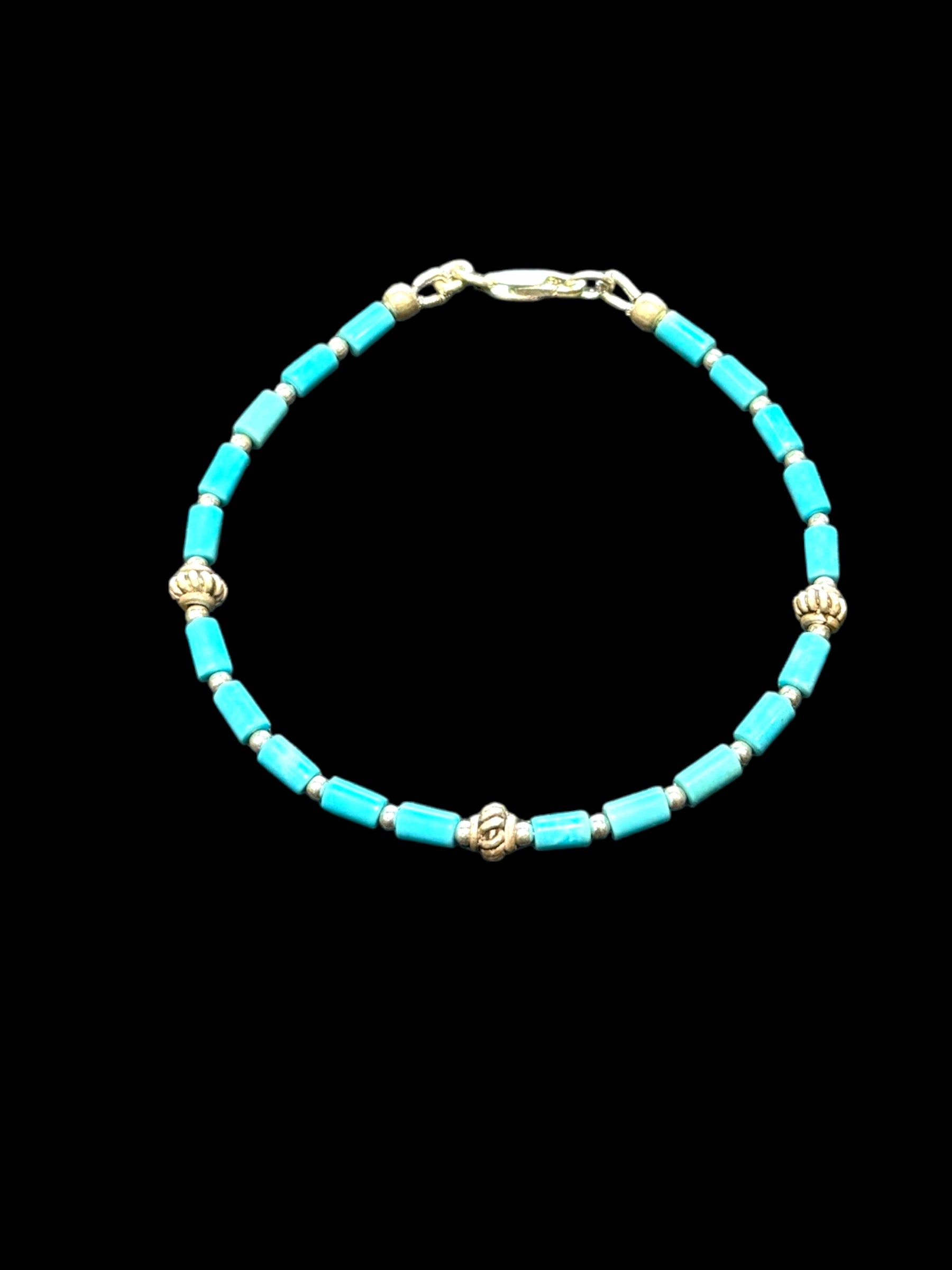 Fine turquoise bracelet made from sky blue Arizona turquoise, finished withsterling silver spacer beads and a sterling silver clasp. Our bracelet can be worn by men or women.