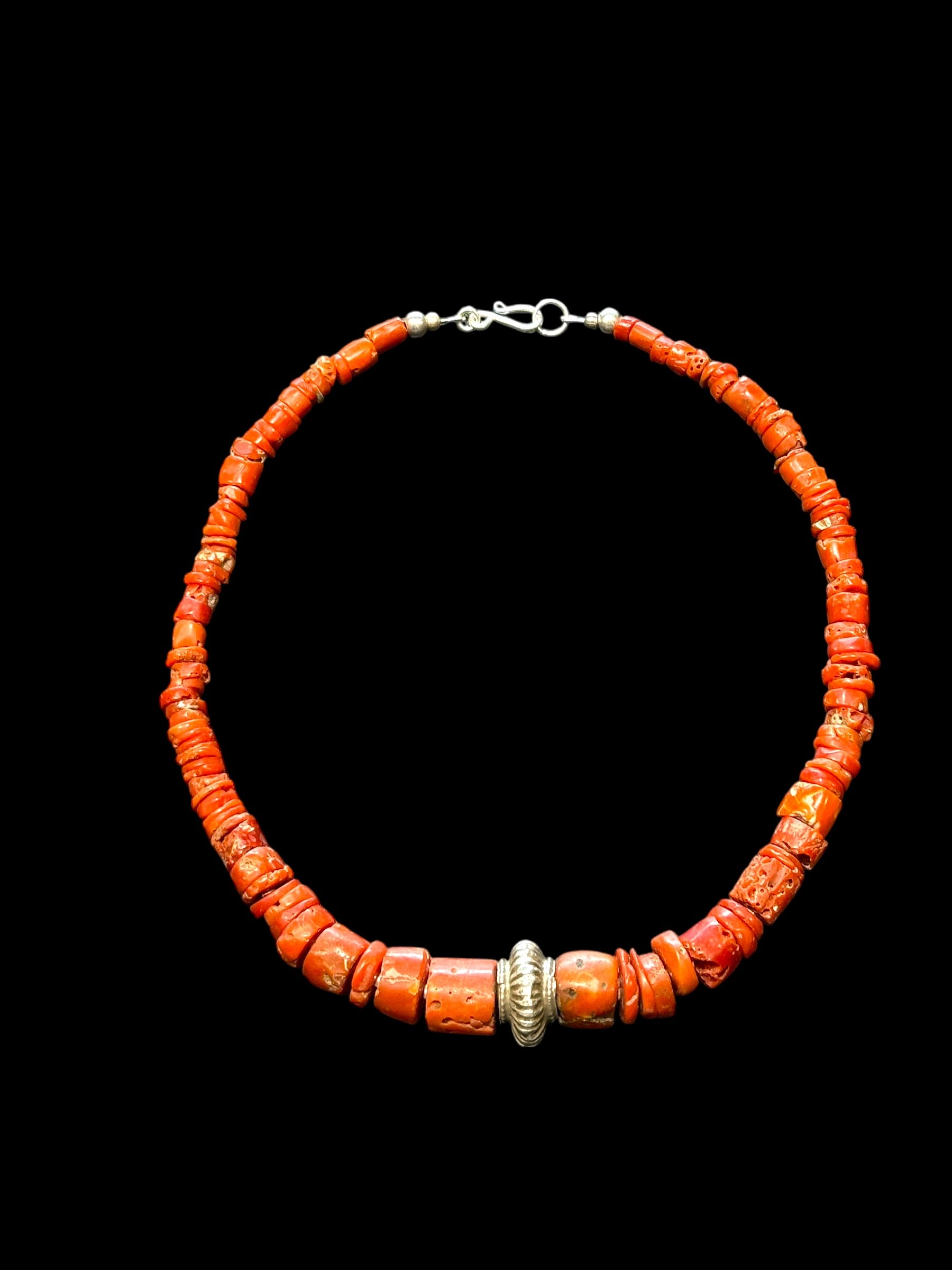 A very wearable tribal antique coral necklace. Red coral is traditionally believed to ward off the evil eye and is worn for protection.